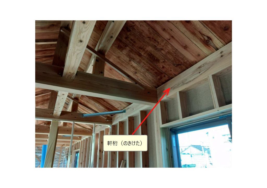 建物の構造材の内、軒先部分の部材を「軒桁(のきけた)」と呼んでいます。