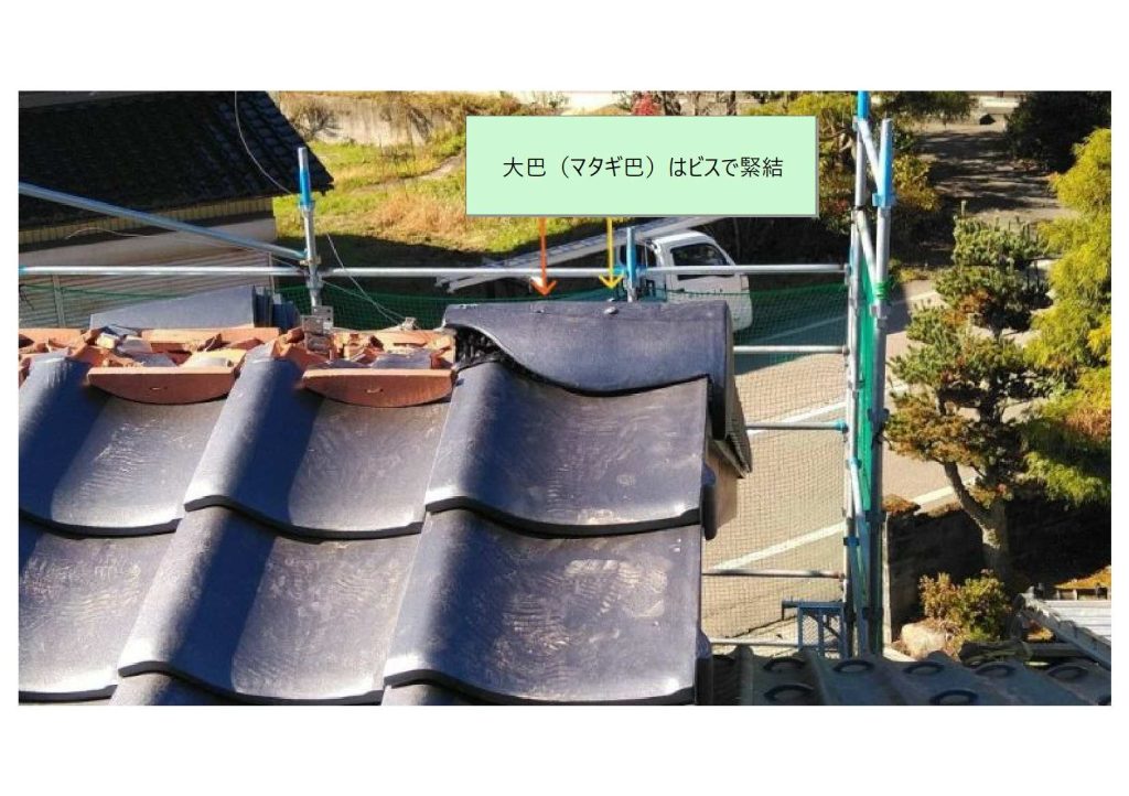 「半端瓦」「冠瓦」の緊結方法