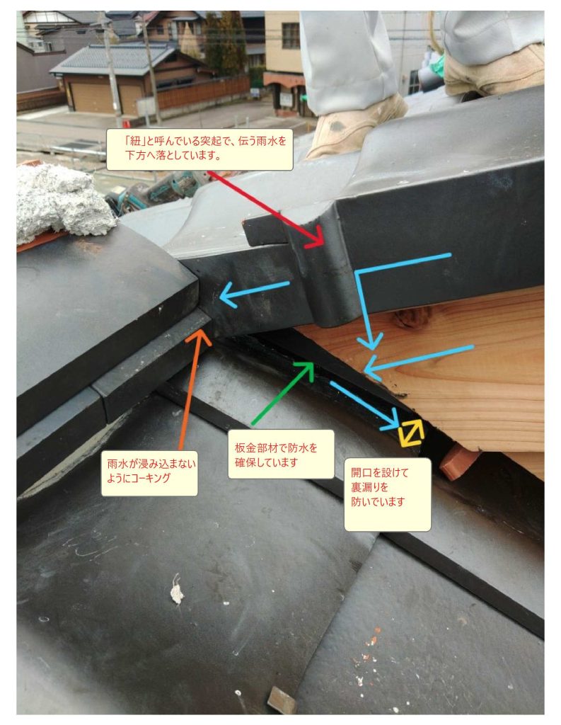 ③のし瓦の勾配 雨水が侵入しやすい箇所への工夫と対応