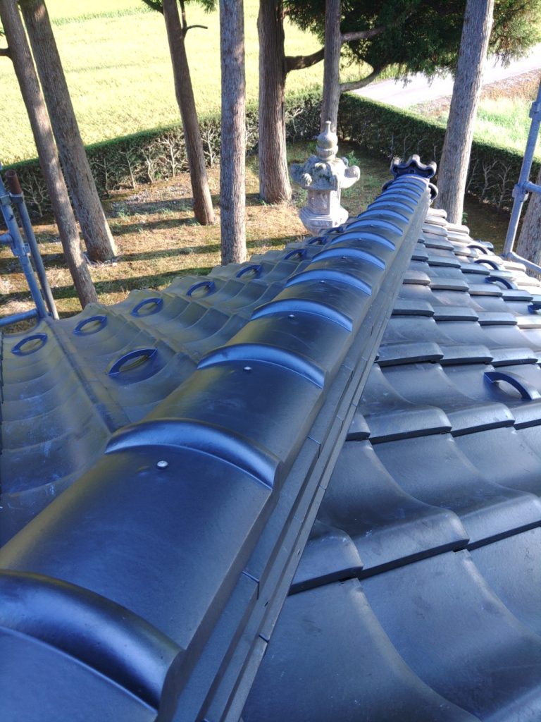 「半端瓦」の適切な勾配の調整は、瓦の表面の雨水を軒先方向に流すために重要な作業になります。