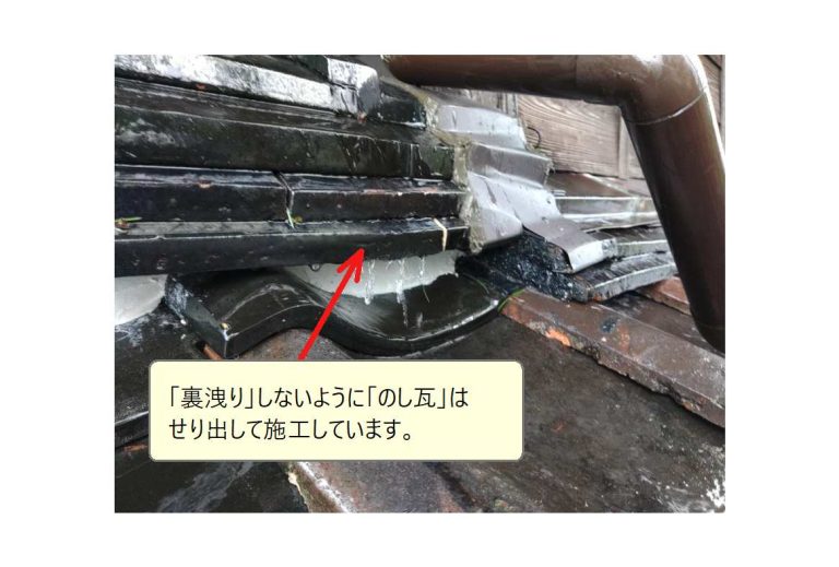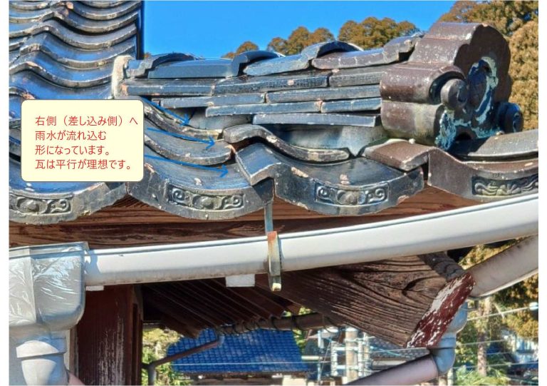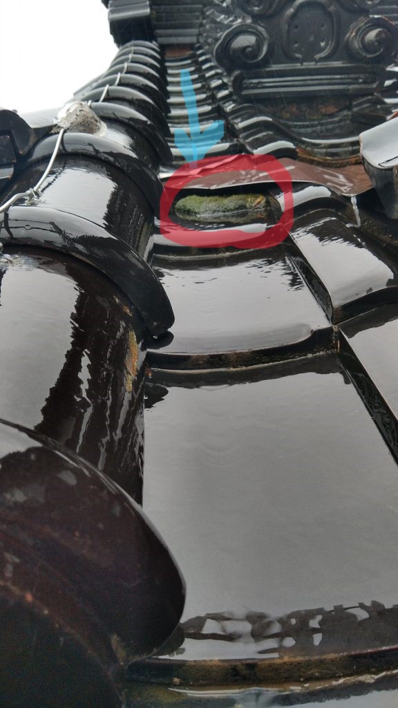 「下地の腐食による瓦の落ち込み」で、逆水を起こします。