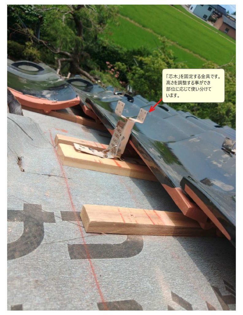 「下がり丸」は「冠瓦」を「芯木」に「ビス」で緊結して完成となります。