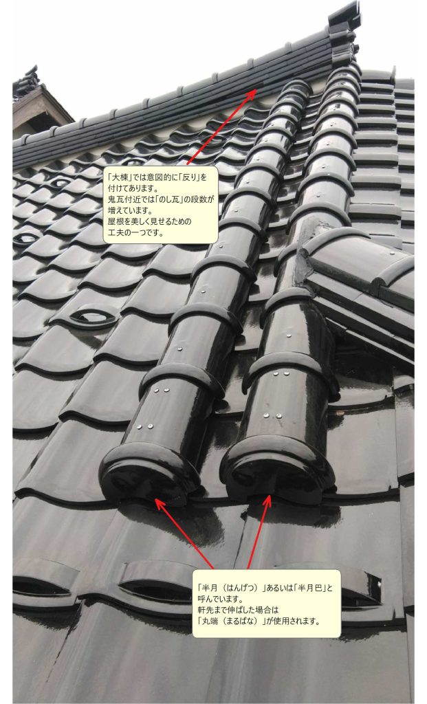 「下がり丸」の端部が、屋根の途中までの場合は「半月(はんげつ)」