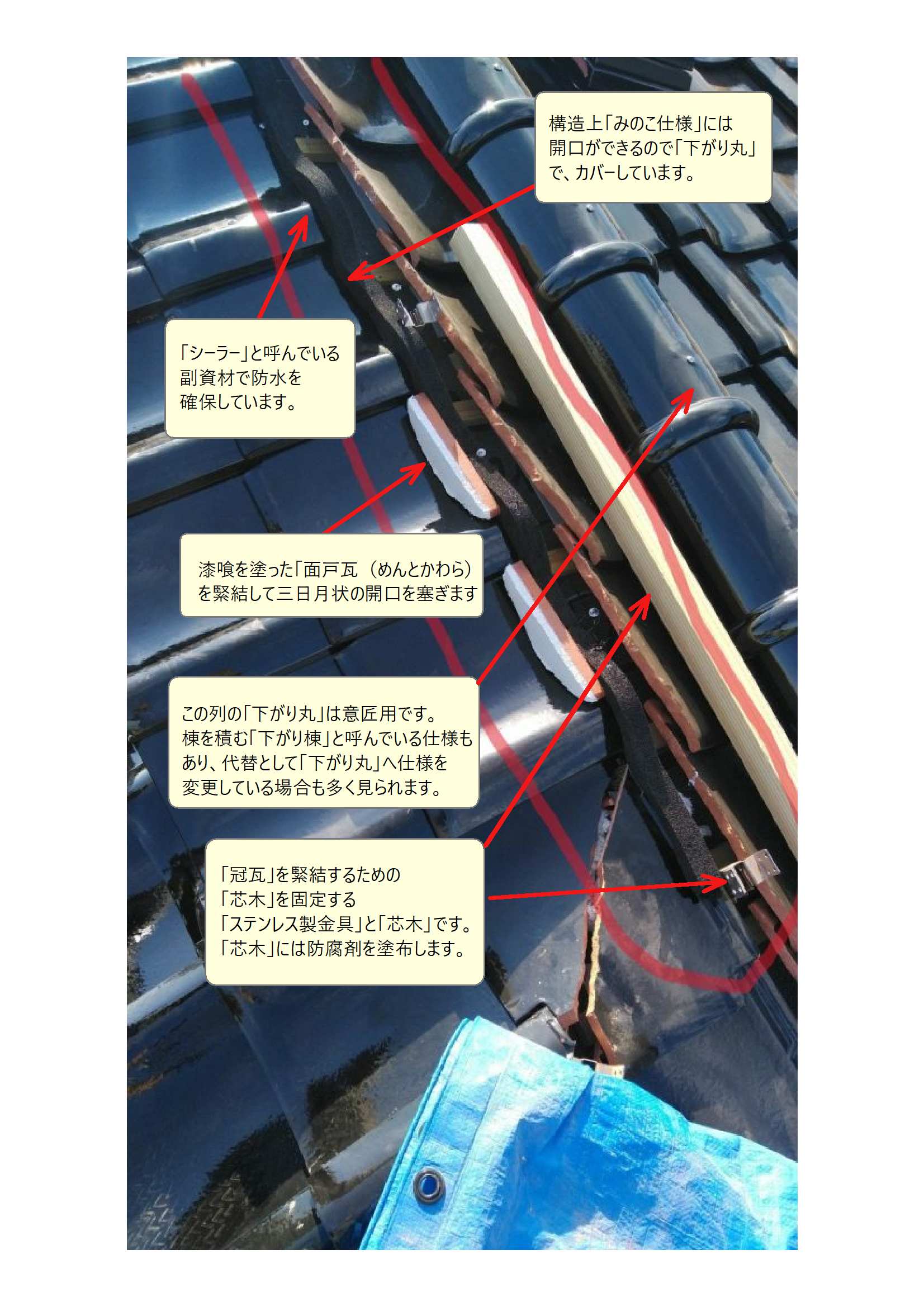 右側の下がり丸は「みのこ」の隙間を塞ぐ、左側は「瓦の幅調整と美観」が目的です