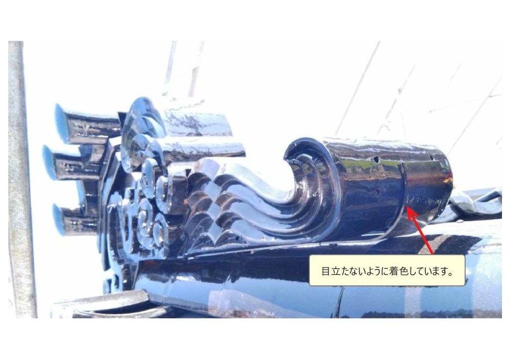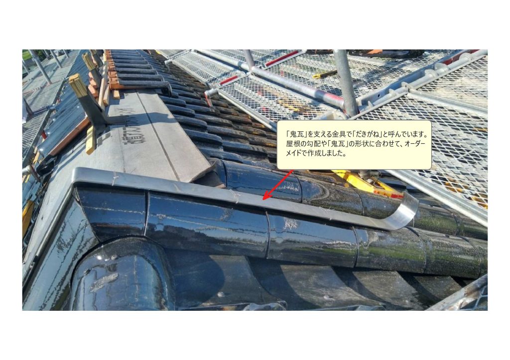 鬼瓦を支える重要な部材なので「鋼鉄製」で「メッキ」を施して鬼瓦の実寸寸法に合わせてオーダーメイドするなど、妥協の無い部材を作る事ができました。