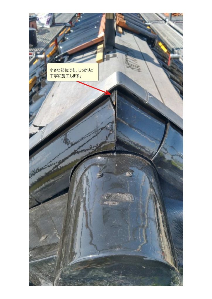 瓦は「焼き物」です。ねじれや傾きがあって当たり前です。工夫して、調整を重ねます。
