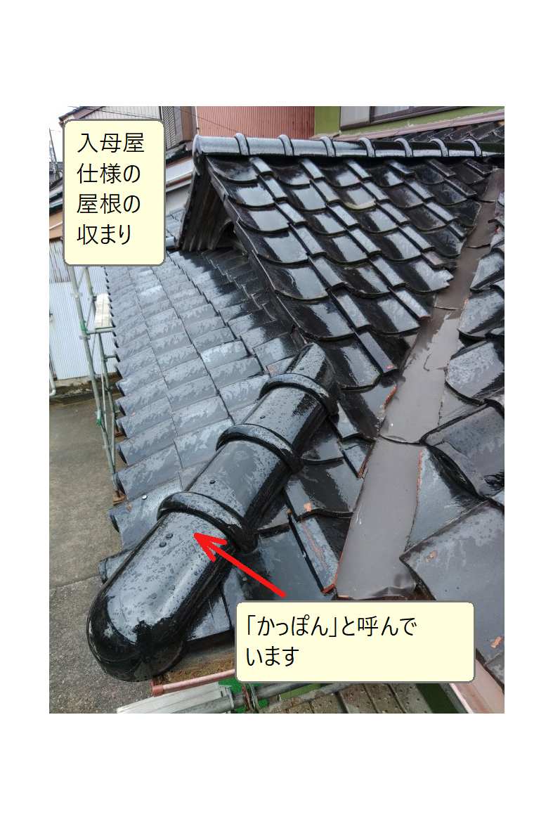 「隅棟」の端部は「かっぽん」と呼んでいる瓦を施工します。