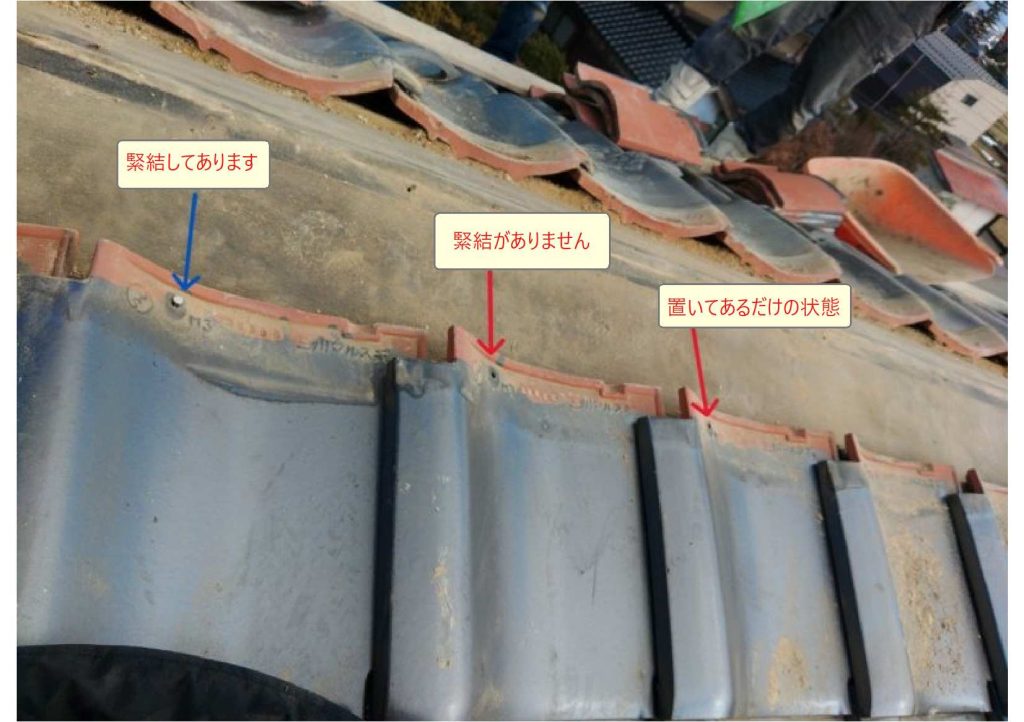 瓦が緊結が不十分な場合があります。